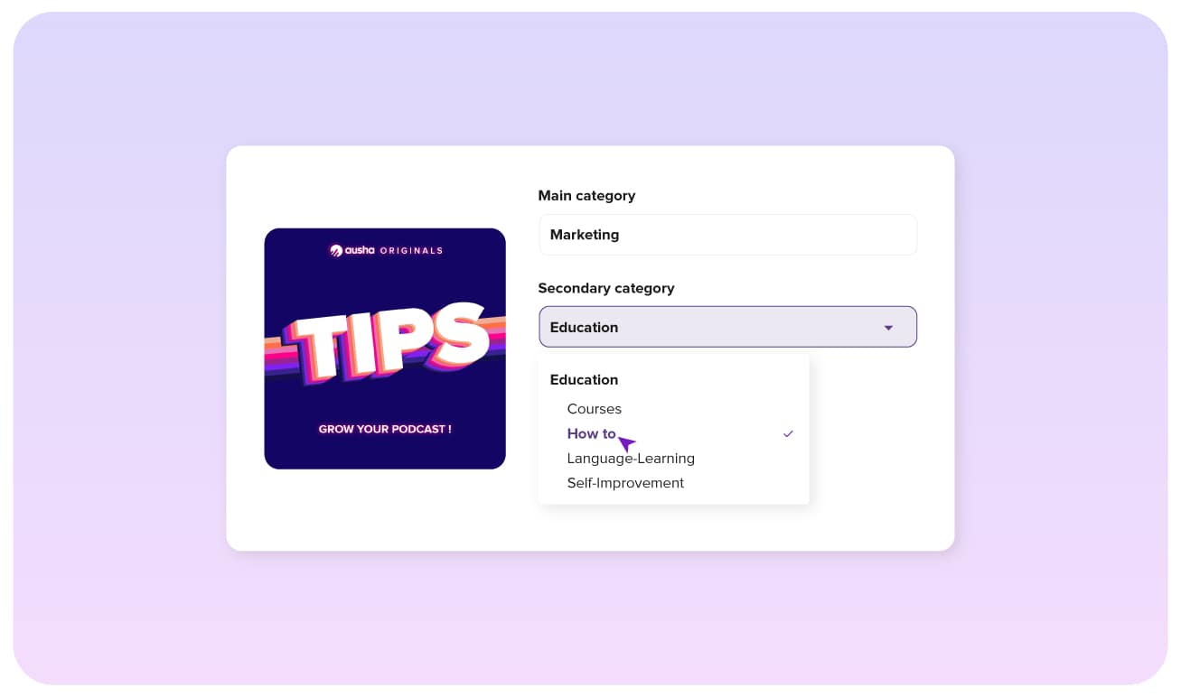 Parmi les métadonnées que vous devez renseigner sur Ausha (ou sur un autre hébergeur de podcast) avant de publier votre podcast, se trouvent les catégories de votre podcast. Une catégorie, c’est ce qui permet de ranger votre podcast à la bonne place.