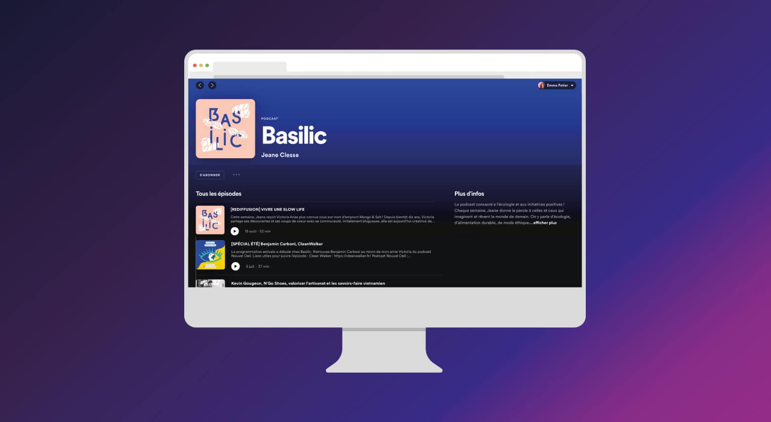 Une autre façon de faire de la cross-promotion entre podcasteur•ses est de diffuser un épisode du podcast partenaire dans son propre flux. Pour vous donner une idée, vous pouvez vous rendre sur le podcast Basilic. Jeane, l’host de Basilic a décidé de diffuser cet été, des épisodes de ses podcasts favoris.