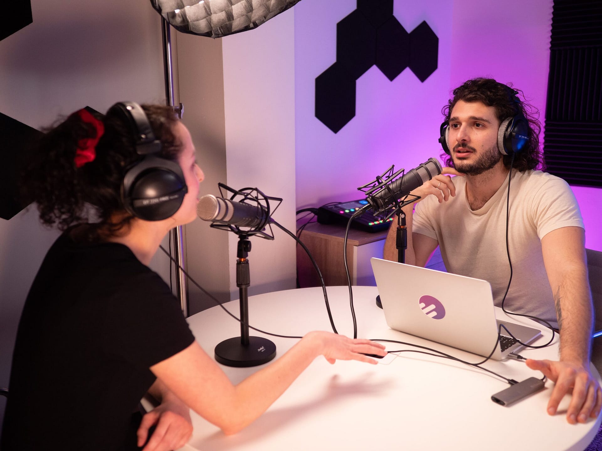Chez Studiomatic vous trouverez des studios dédiés aux podcasteurs, que vous soyez seul, à deux ou en groupe (jusqu’à 6). Les espaces d’enregistrement sont tous dotés de micros, de casque de monitoring, de consoles de mixage RØDECaster Pro II et de supports de caméra pour y filmer vos sessions, avec votre propre matériel ou en louant des caméras HD disponibles sur place.