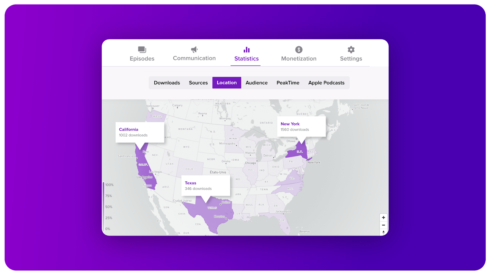 Savoir dans quelles régions votre podcast est le plus populaire vous aidera à identifier des opportunités de croissance potentielles. 🚀