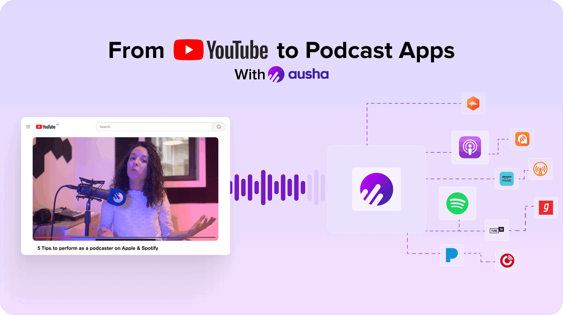 Que vous souhaitiez transformer l’intégralité de votre chaîne YouTube en podcast ou simplement convertir certaines de vos vidéos YouTube en audio pour les rendre accessibles partout, Ausha vous propose une solution automatisée unique.