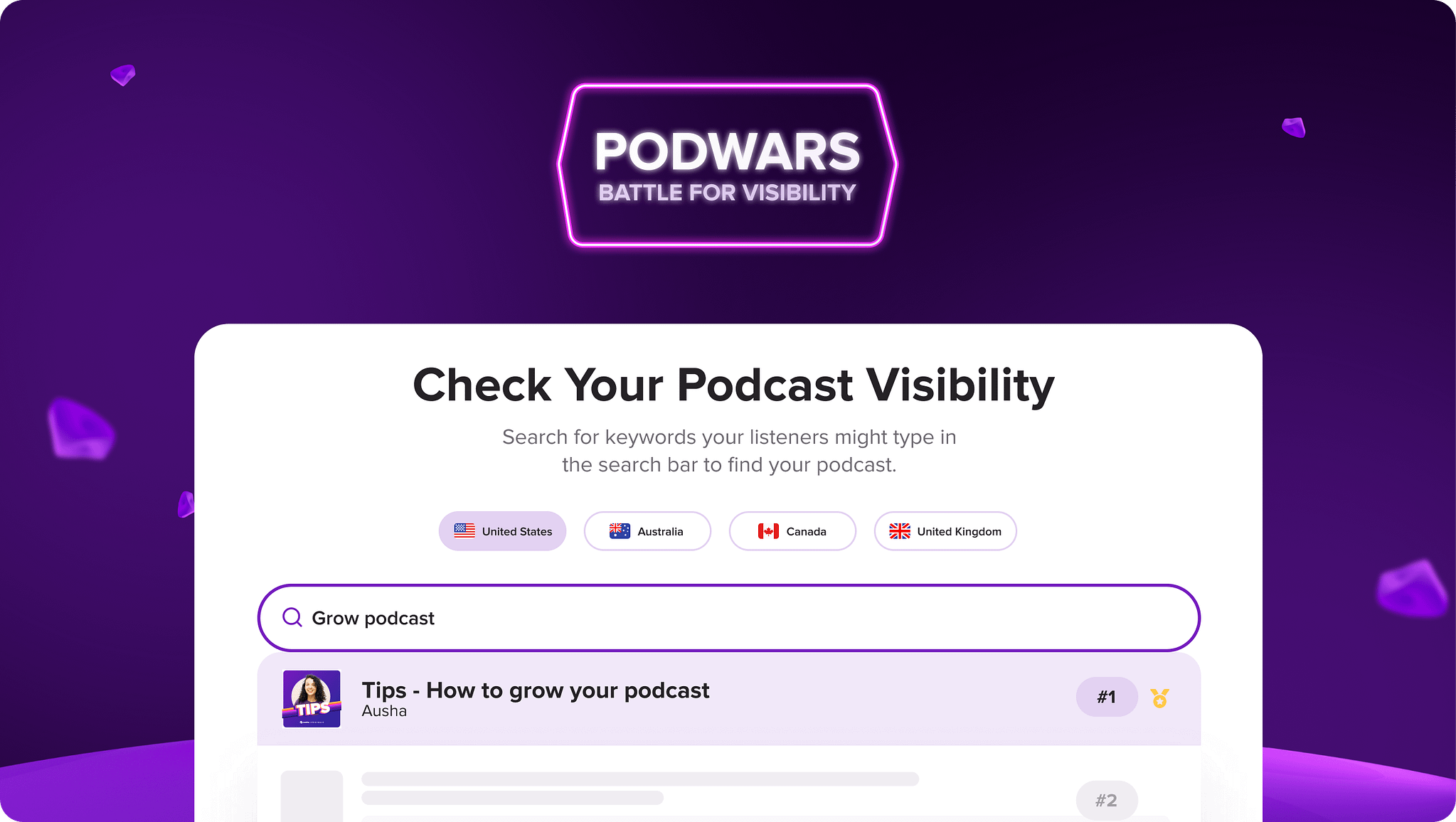 Testez PodWars, notre outil de visibilité gratuit, et découvrez les performances de votre émission dans les résultats de recherche.