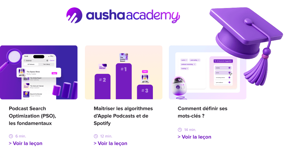 Un parcours de leçons pratiques et progressives pour maîtriser l’optimisation et développer l’audience de votre podcast.