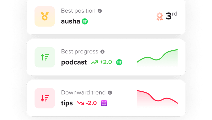 Repérez en un instant les podcasts mieux classés que vous sur vos mots-clés.