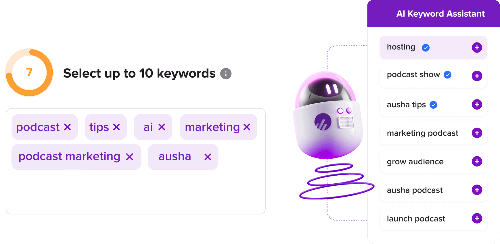 Discover keyword opportunities with AI-powered suggestions tailored to your podcast.