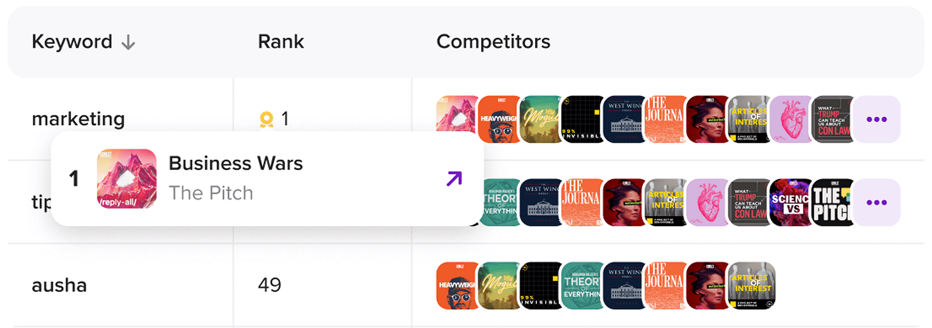 Podcast visibility is a battle. Every keyword is a competitive arena where podcasts fight for the top spots.