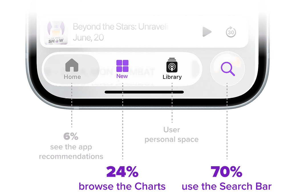 70% of Listeners use the search tab to find shows—make sure they find yours. If you're not showing up, your show will stay invisible.