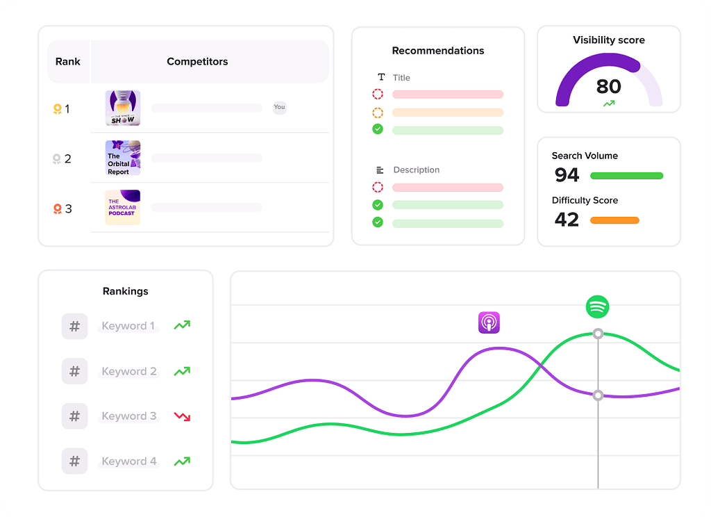 Podcast visibility is a battle. Every keyword is a competitive arena where podcasts fight for the top spots.